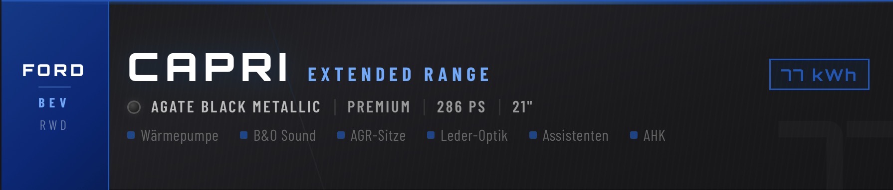 Das Witzige ist ja, dass, glaubt man dem Konfigurator, die 21 Zöller sogar ein paar wenige Kilometer mehr Reichweite haben als 20 Zoll oder 19 Zoll mit GJR. Ansonsten wäre mir die Version ohne Aufpreis die goldene Mitte. Wobei ich nicht herauslese, welches Grundpaket Du nimmst. Ich würde Premium nehmen, ist aber Geschmacksache. Die 20 Zoll sind m.E. auch ein guter Kompromiss, optisch finde ich persönlich die 21 Zoll Felgen weder am Explorer noch Capri stimmig, liegt auch am Felgendesign, das sagt mir nicht so recht zu. Dann ist etwas Gummi schon hilfreich im Verkehrsgetümmel. Am Ende geht sicher alles, aber wenn Du Dir schon Gedanken über Komfort machst, dann lass die 21 Zöller, sie sind schlechter, ebenso würde ich die 19er lassen, denn die GJR sind vom Geräusch, auch ein Komfortmerkmal schlechter. Wer das sensibel ist, der Ford ist ja nicht ganz so leise ab 120, der ist vermutlich mit SR/WR besser bedient.